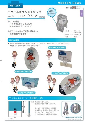 2つの機能を備えた商品となります。アクリルクリップとして、アクリルスタンドとして表現することが可能なパーツとなります。アクリルクリップ製造に煩わしい接着作業が不要です。