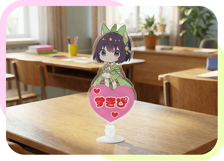 聖地巡礼、飲食店、ご自宅でのアクリルスタンドやアクリルキーホルダーの撮影にお使いいただけます。