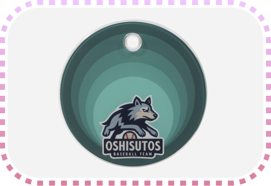 オリジナル台座印刷や、アクリルキーホルダー貼り付け用の両面テープの追加に対応できます。