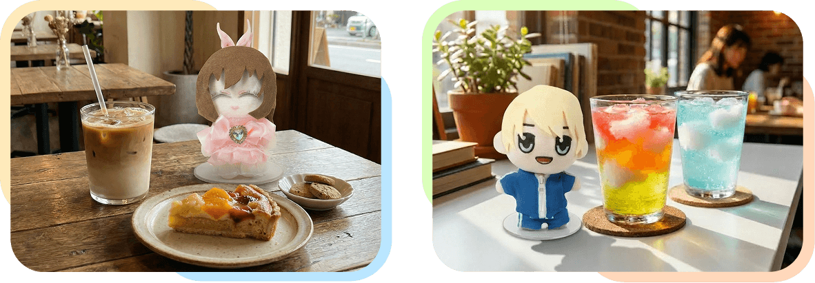飲食店、ご自宅でのアクリルスタンドやアクリルキーホルダーの撮影にお使いいただけます。